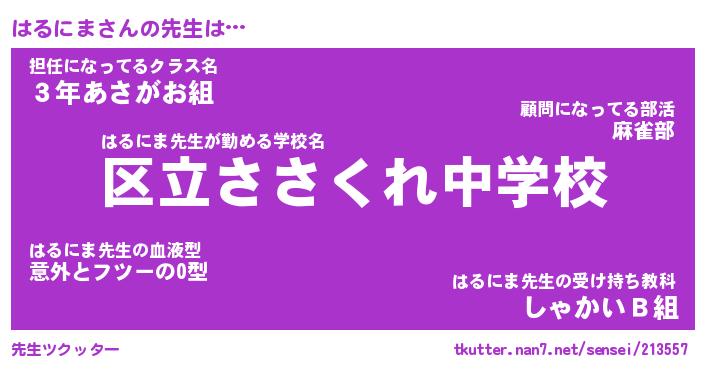 | 意味不明あだ名 | 『ペロリンはるにま』『永久保存はるにま』 |