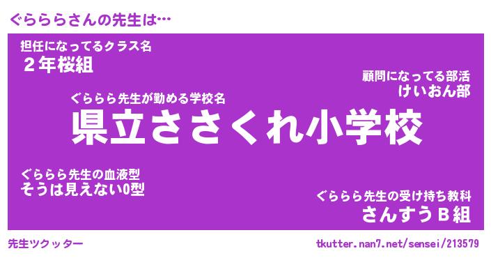 | 意味不明あだ名 | 『ペロリンぐららら』『永久保存ぐららら』 |