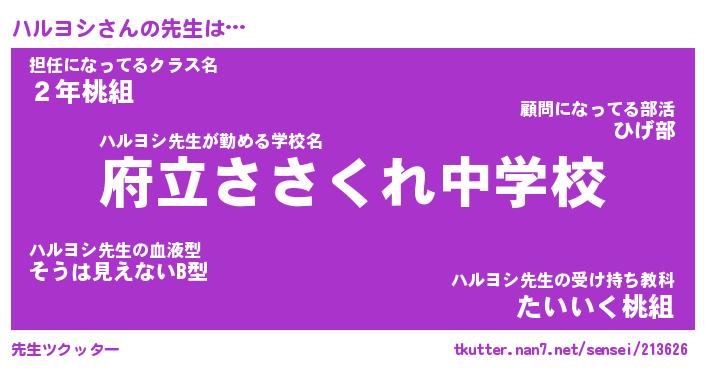 | 意味不明あだ名 | 『ペロリンハルヨシ』『永久保存ハルヨシ』 |
