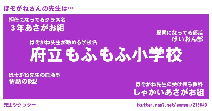 | ヘコむあだ名 | 『ほそにゅー』『酢こんぶ』 |