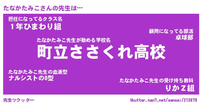 | ヘコむあだ名 | 『たなもー』『つくし』『たな太郎』 |