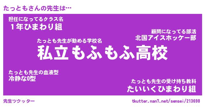 | 意味不明あだ名 | 『ペロリンたっとも』『永久保存たっとも』 |