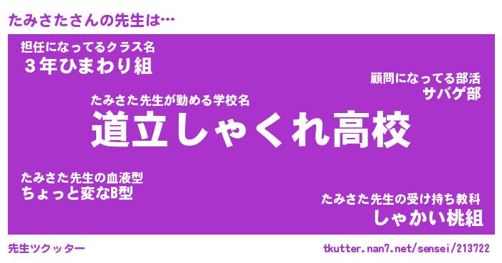 | 意味不明あだ名 | 『ペロリンたみさた』『永久保存たみさた』 |