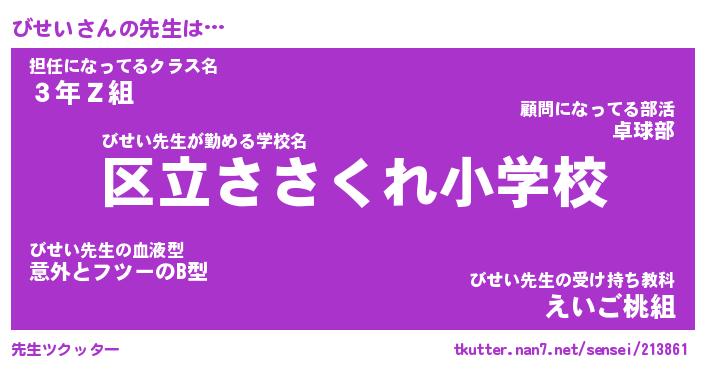 | ヘコむあだ名 | 『びせもー』『つくし』『びせっ子』 |