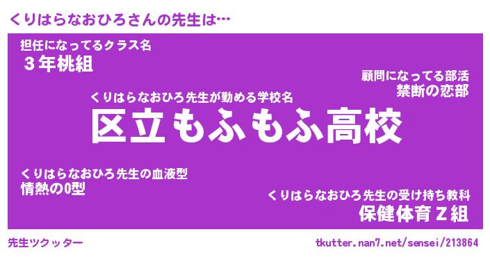 | 肩書あだ名 | 『くりはらなおひろ店長』 |