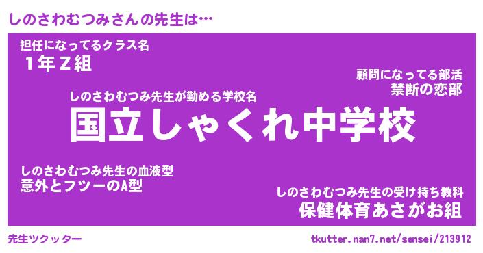 | 男性向けラノベタイトル風あだ名 | 『しのさわむつみの憂鬱』 |
