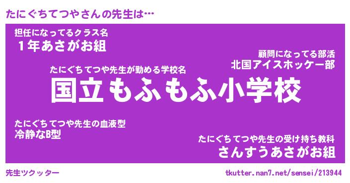 | 恥ずかしいあだ名 | 『プリティーたにぐちてつや』『たにちん』 |