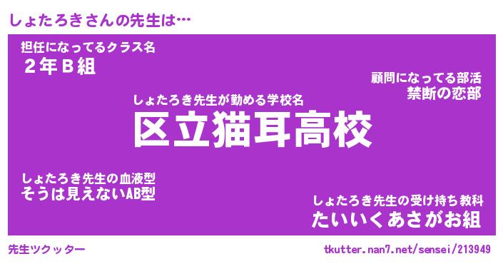 | ファンタジー風あだ名 | 『ショフェル』『エターナルショタロキー』 |
