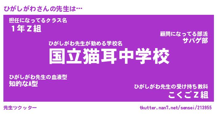 | ファンタジー風あだ名 | 『ヒガフェル』『エターナルヒガシガワー』 |