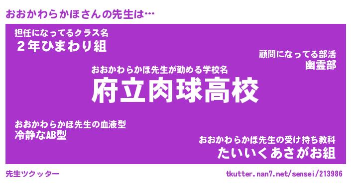 | ヘコむあだ名 | 『おおふぇ~』『なまこ酢』 |