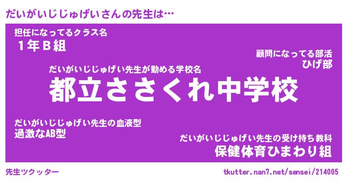 | 意味不明あだ名 | 『ペロリンだいがいじじゅげい』 |