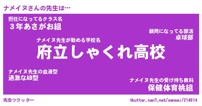 | 意味不明あだ名 | 『ペロリンナメイヌ』『永久保存ナメイヌ』 |