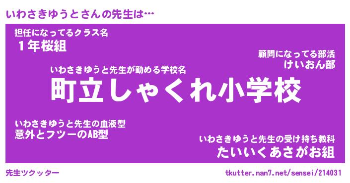 | 恥ずかしいあだ名 | 『プリティーいわさきゆうと』『いわちん』 |