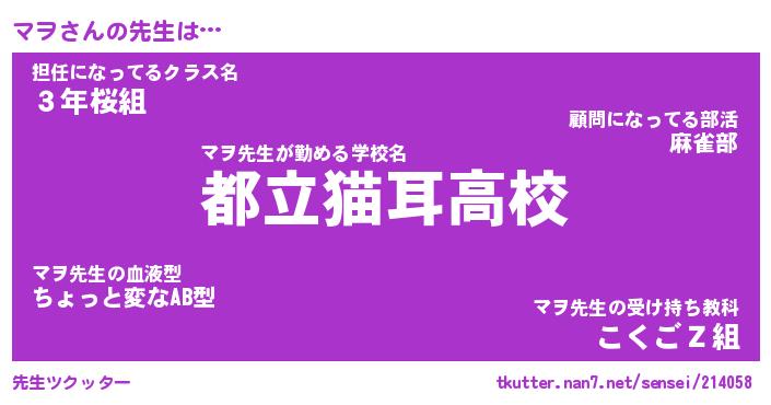 | ヘコむあだ名 | 『マヲにー』『酢こんぶ』『マヲ太郎』 |