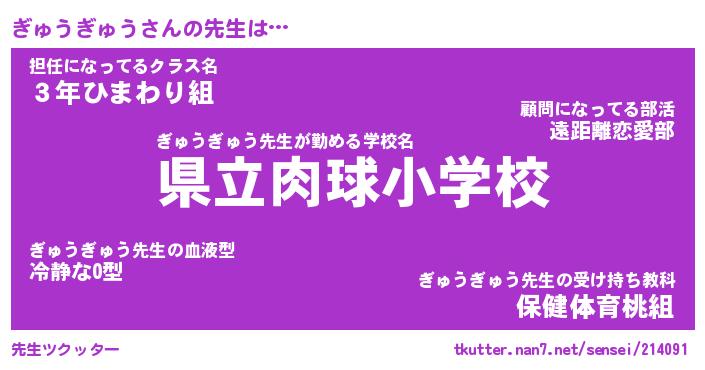 | ヘコむあだ名 | 『ぎゅふぇ~』『つくし』『ぎゅお』 |