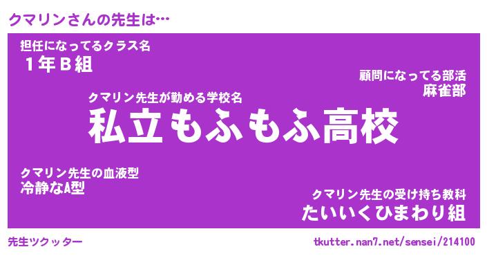 | 肩書あだ名 | 『クマリン店長』『クマリン総理大臣』 |