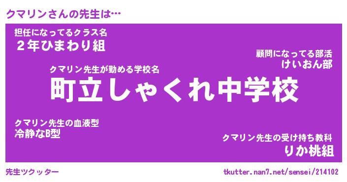 | ファンタジー風あだ名 | 『クマフェル』『エターナルクマリンー』 |