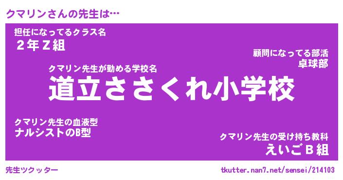 | ファンタジー風あだ名 | 『クマフェル』『エターナルクマリンー』 |