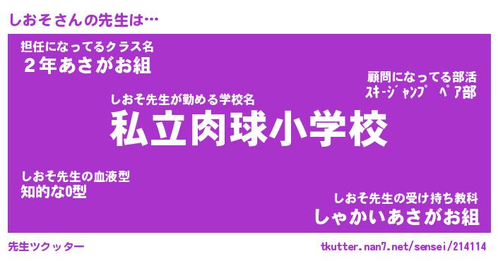 | ヒーロー風カッコイイあだ名 | 『スーパーシオソ』『ウルトラしおそマン』 |