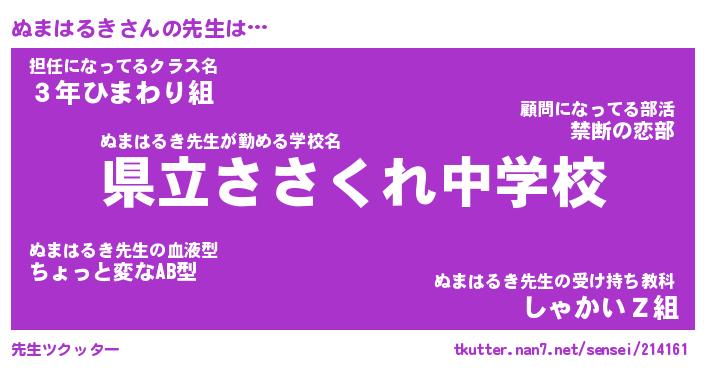 | ファンタジー風あだ名 | 『ヌマフェル』『エターナルヌマハルキー』 |