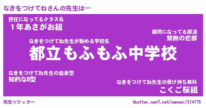 | ヘコむあだ名 | 『なきにゅー』『つくし』『なきっぺ』 |