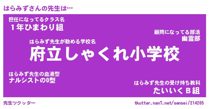| 意味不明あだ名 | 『ペロリンはらみず』『永久保存はらみず』 |