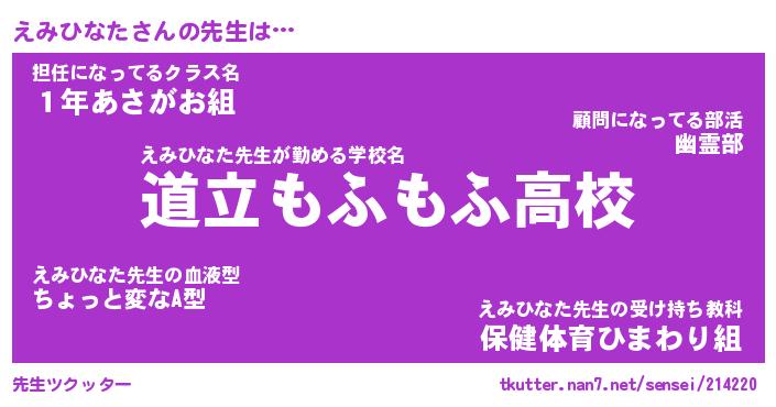 | ヘコむあだ名 | 『えみにゅー』『つくし』『えみ太郎』 |