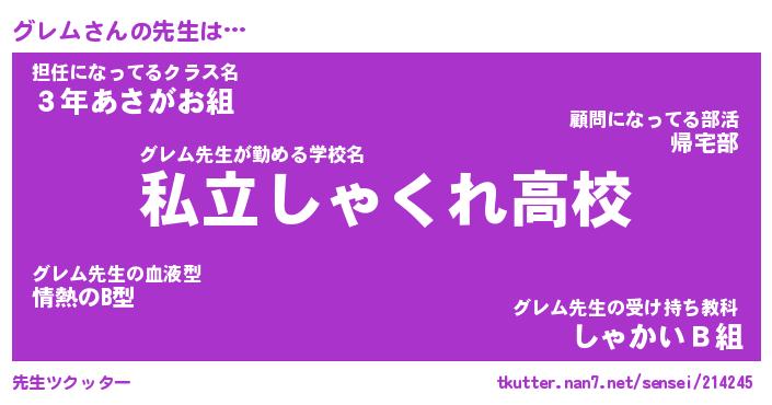 | 意味不明あだ名 | 『ペロリングレム』『グレムフォーエバー』 |