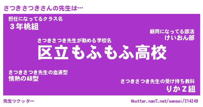 | ヒーロー風カッコイイあだ名 | 『スーパーサツキサツキ』『炎刃騎士サツ』 |