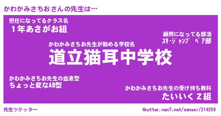 | 意味不明あだ名 | 『ペロリンかわかみさちお』 |