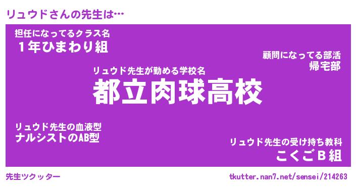 | 意味不明あだ名 | 『ペロリンリュウド』『永久保存リュウド』 |