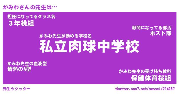 | 欧米人風あだ名 | 『マイケルかみわ』『かみわクリステル』 |