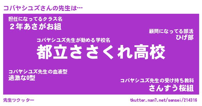 | ポケモン風あだ名 | 『コバチュウ』『コバヤダネ』 |