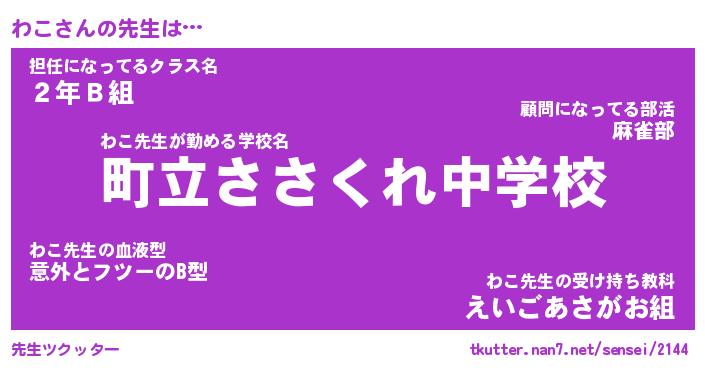 | ヘコむあだ名 | 『わこもー』『豆乳』『わこっ子』 |