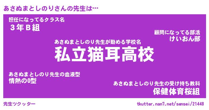 | 男性向けラノベタイトル風あだ名 | 『あさぬまとしのりの憂鬱』 |
