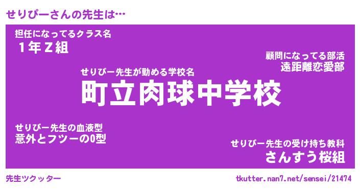 | 意味不明あだ名 | 『ペロリンせりぴー』『永久保存せりぴー』 |