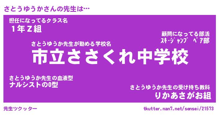 | ヒーロー風カッコイイあだ名 | 『スーパーサトウユウカ』『暗黒騎士サト』 |