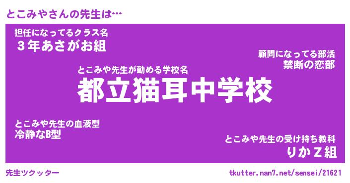 | 意味不明あだ名 | 『ペロリンとこみや』『永久保存とこみや』 |