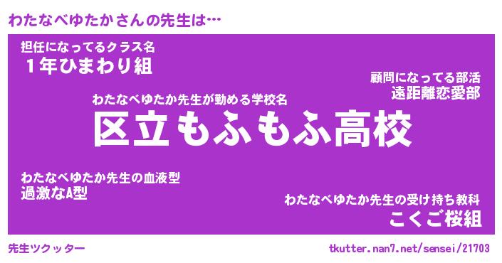 | ヘコむあだ名 | 『わたにゅー』『牛乳』『わたぷりん』 |