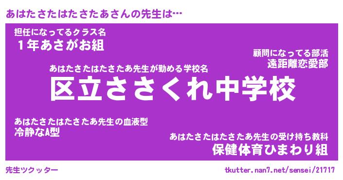 | 伝説のあだ名 | 『封印されしスナイパーあはたさたはたさたあ』 |