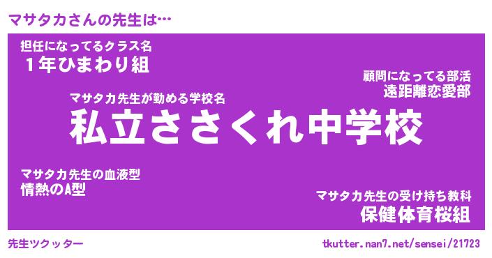 | 意味不明あだ名 | 『ペロリンマサタカ』『永久保存マサタカ』 |