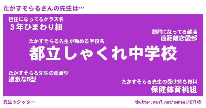 | ヒーロー風カッコイイあだ名 | 『スーパータカスソラル』『幻影騎士タカ』 |