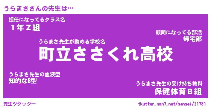 | 意味不明あだ名 | 『ペロリンうらまさ』『永久保存うらまさ』 |