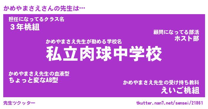 | 肩書あだ名 | 『かめやまさえCEO』『かめやまさえ副担任』 |