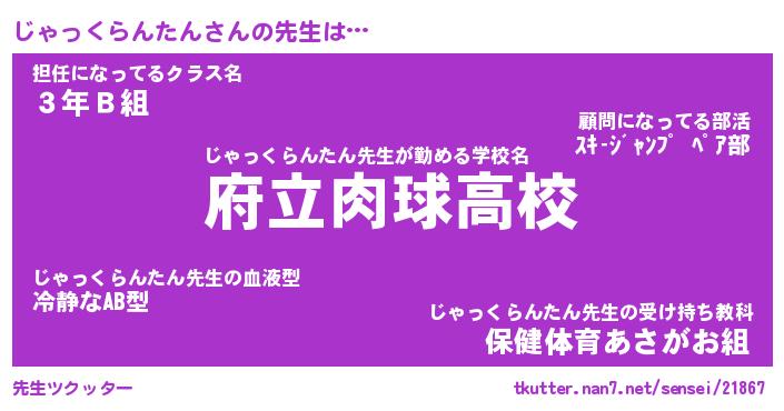 | 胡散臭い通販商品みたいなあだ名 | 『億万長者になれるブレスレット…その名も「じゃっくらんたん」』 |