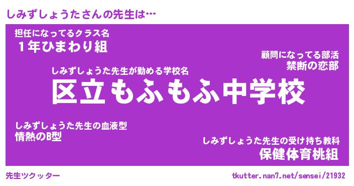 | ヒーロー風カッコイイあだ名 | 『スーパーシミズショウタ』 |