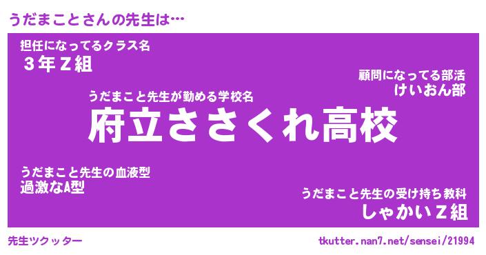 | ファンタジー風あだ名 | 『ウダフェル』『エターナルウダマコトー』 |