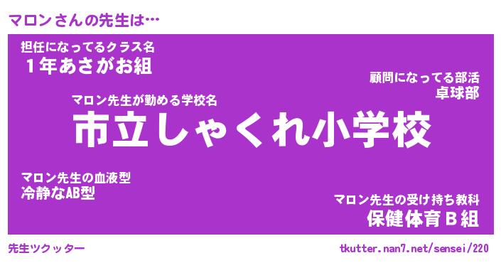 | 意味不明あだ名 | 『ペロリンマロン』『マロンフォーエバー』 |