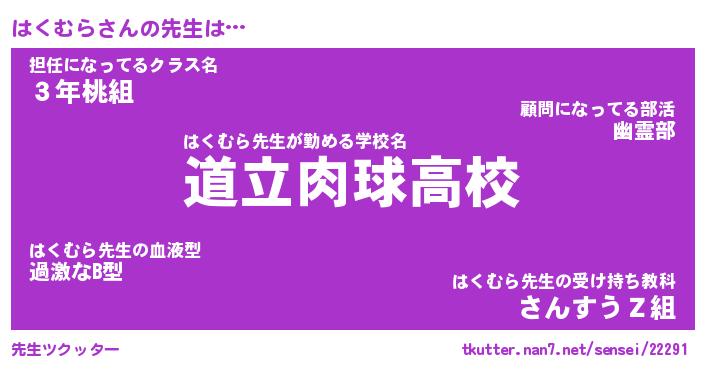 | 意味不明あだ名 | 『ペロリンはくむら』『永久保存はくむら』 |