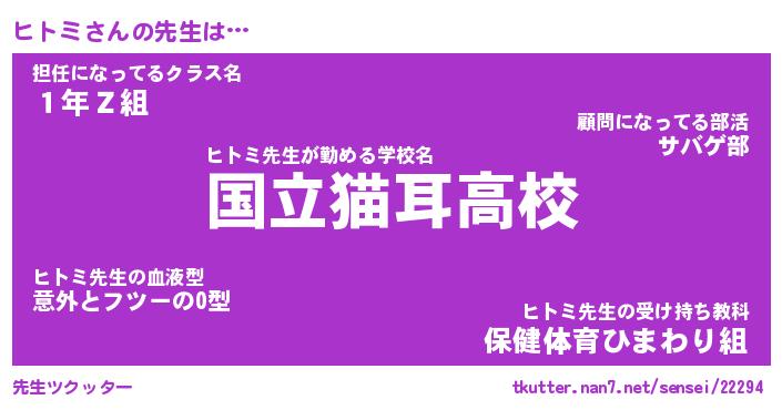 | ファンタジー風あだ名 | 『ヒトフェル』『エターナルヒトミー』 |